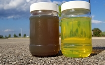 Left Is the sludge that was sitting at the bottom of the fuel tank. Right is from the same fuel after fuel polishing.